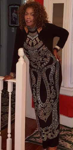This dress is spectacular! It's made of exquisite stretch mesh, with meticulously placed stones all over the dress which creates a beautiful pattern, and gives off lots of sparkle, glitz and glam. Can be worn alone, if you dare, or paired with other garments of clothing as well, as shown. Comes with full attached panty which can be easily removed. Size: S-M-L. (model is wearing medium). Color: Caviar or Champagne.