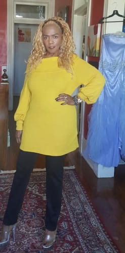 Long sleeved, off shoulder ribbed, over sized  classic shirt.  Size small being worn in pictures. Size: S-M-L.  Color: Mustard or Black.
