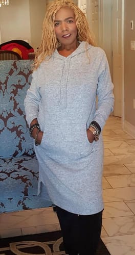 This shirt feels like a warm pile of love! Wear it in or wear it out! It's super soft and fleecy, and features a drawstring hood and kangaroo pouch pockets. Color: Grey, Spicy Mustard. Size: 1X-2X-3X.