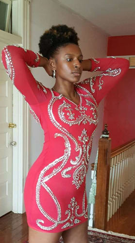 Enchanting swirl design made of beautiful stones sewn meticulously onto a double layered fabric. Absolutely stunning with back zipper. Color: Red. Size: S-M.