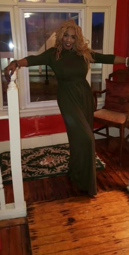 This maxi dress is a soft jersey , stretchy and fashionable. It features 3/4 sleeves, mock neck, pockets great length for wearing casual or dressy. Colors: Navy or Olive ~ S-M-L. Grey comes in S to 3X.